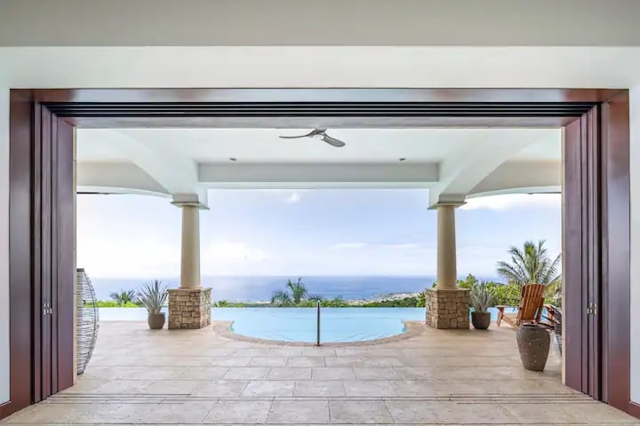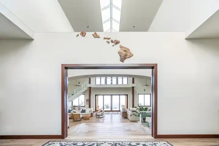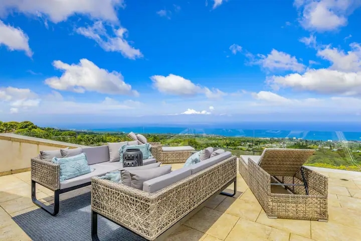 Welcome to the Kailua Kona Estate, a stunning architectural wonder overlooking Kailua-Kona, designed to deliver a rejuvenating island experience. This 9,452 sqft private mansion on five manicured acres offers unparalleled luxury just five minutes from downtown Kona. Imagine yourself unwinding in the 100′ infinity edge pool, seamlessly blending with the ocean horizon as the sun sets in vibrant hues. The estate’s great room is the heart of the home, where connections are forged over wine at the wet bar or gourmet meals in the kitchen. Cap off your day in the plush, 16-seat movie room, a perfect retreat after sun-soaked adventures. At Kailua Kona Estate, every detail is curated for luxury and comfort, promising an unforgettable experience that is more than just a stay—it’s a landmark in your journey.